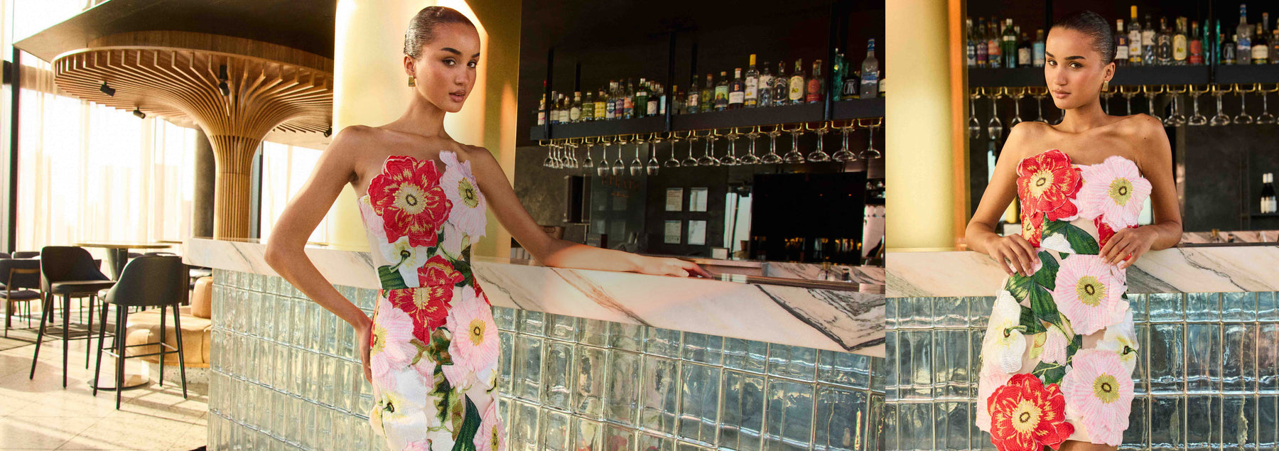Solara Strapless Mini Dress in Pink Floral