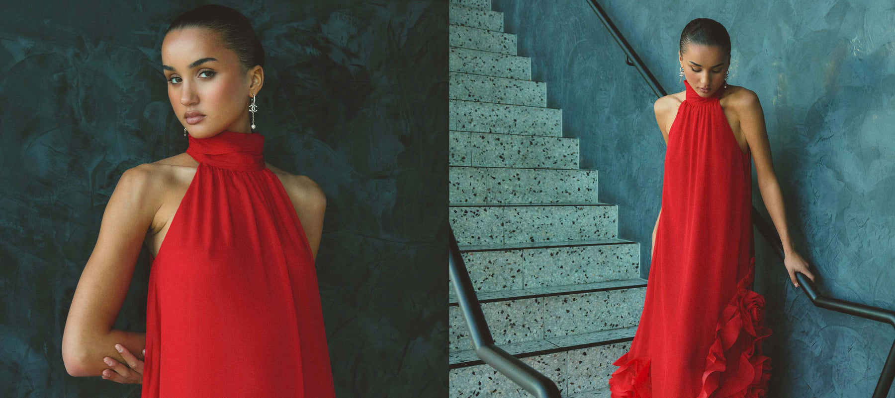Laurel Sleeveless Maxi Dress in Pink & Red