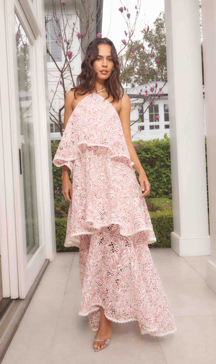 Lumira Sequin Lace Mini Dress in Pink Ombre