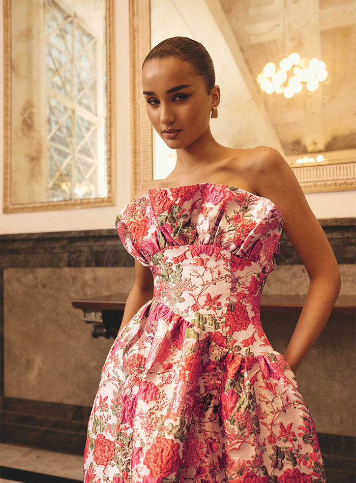 Floralie Short Sleeve Mini Dress in Pink Floral