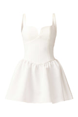 Effortlessly polished with a modern feminine touch, the Hester A-Line Mini Dress in White is a refined staple designed to flatter. Crafted from Bella stretch crepe and satin fabrication, this piece balances soft sheen with subtle structure. The fitted bodice and flare skirt offer a classic A-line silhouette that moves with ease.