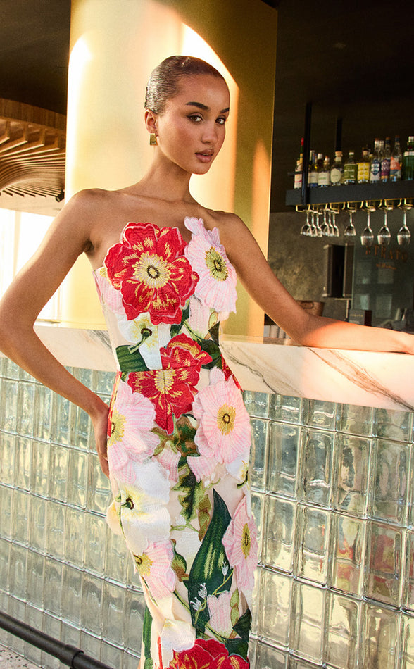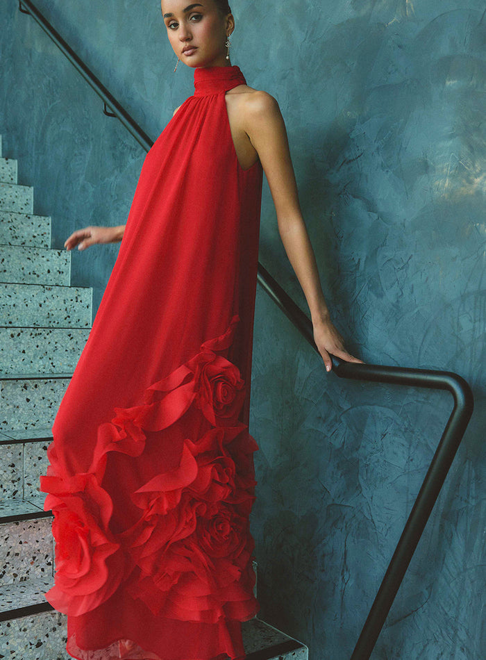 Its gently flared tiered design creates a light, swaying silhouette that moves with you, adding volume without feeling overwhelming. Made from a softly luminous textured satin fabric, this dress catches the light in all the right ways while offering a relaxed, floaty feel. Though the fabric has no stretch, the easy shape ensures all-day comfort.